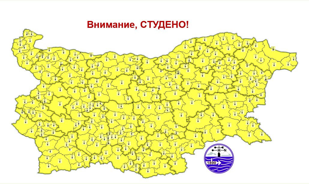 Жълт код за студено време е обявен за днес в цялата страна